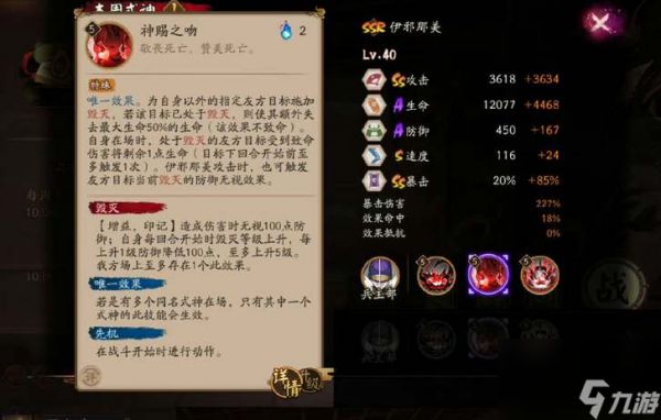 1、伊邪那美自身面板双ss,输出面板高的同时速度也不低。有三个独特的Debuff效果: