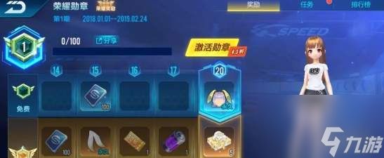 进入荣耀勋章入口,车手们可以看到左边琳琅满目的勋章奖励!从最左边可以看到,上面一行是免费勋章的奖励,而下面则是荣耀勋章的奖励~