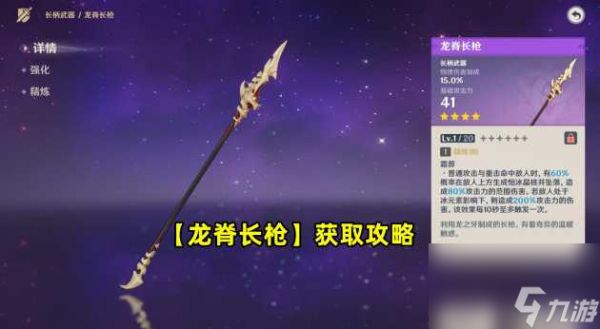 【龙嵴长枪】,同为物伤特化型武器,最高拥有454基础攻击和69%物伤加成。游戏初期缺少主C时,可以给香菱或者罗莎莉亚走物伤流开荒。后期,香菱和罗莎莉亚都要转副C,这把武器也就没什么用了。