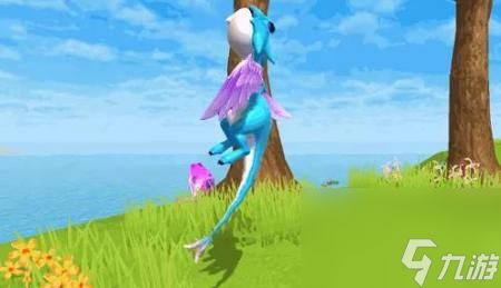 魔法灵龙通体亮蓝色,有双blingbling的大眼睛,瞳孔、双翅、尾尖的淡紫色让它看起来神秘又梦幻。