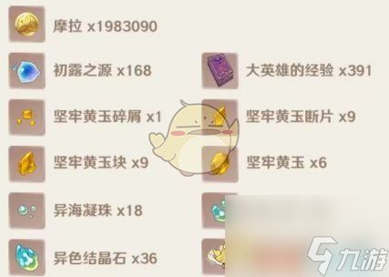 1、20级突破:摩拉20000个、黄玉碎片1块、初露源3个。