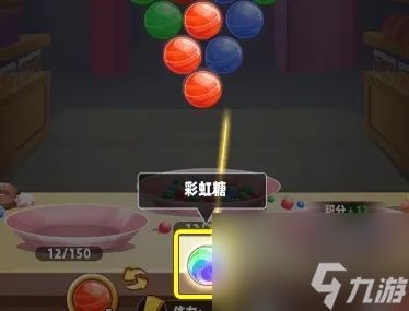 在屏幕上点击,可发射糖果来消除顶部同色的糖果,3个相同颜色的糖果相连就可以发生消除,消除会获得积分,积分可以用于积分商店兑换各种道具。