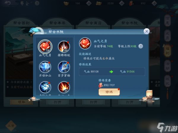 帮派技能加点: