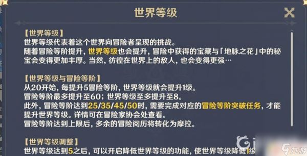 2.世界等级基本完全挂钩于冒险等级,只有达到相应的冒险等级才能够突破世界等级。同时若不突破世界等级,冒险等级也会被锁定在相应的等级。