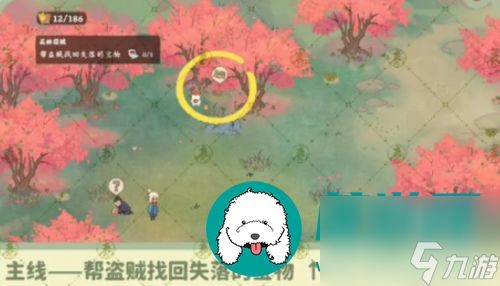 6、支线任务1:找回丢失的大力之笔,来到集市中,在上方左边的桃花树下就可以找到。