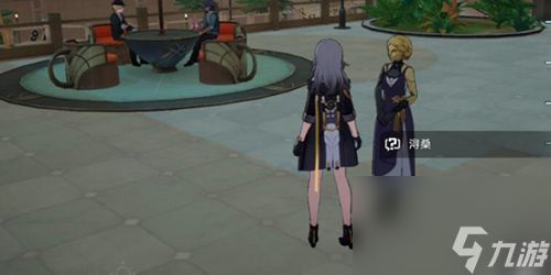3.赎身后我们需要先传送到其他地图,然后再传送回来,在长椅上找到浔桑和她对话,位置如下图所示: