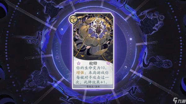 卡牌作用:在牌手残血时作为恢复卡牌使用,且还有增强效果。我方牌手被敌方攻击至残血时,一般情况也承受了10次左右的攻击,所以一张“轮回”可以恢复20滴生命值左右,相当强力。