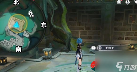 4、玩家来到机关中,和碑铭互动,然后击败魔物。