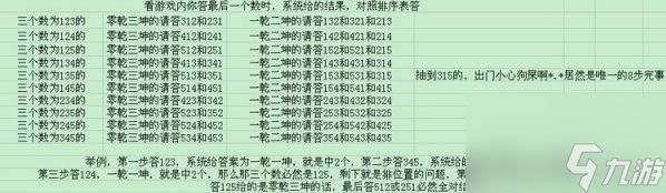 表中给的答题数字不一定按次顺序答的,例如表中说的,第一步答123,个人觉得完全没必要,梦幻出123这个数的概率是够少的,直接答312也能按表的提示答下去,而且312很可能一次就答对完。