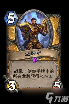 龙语者(Dragon Speaker)是圣骑士职业中的一张史诗品质的随从牌,这张牌上场需要5点法力值,具有3点攻击力和5点生命值,触发战吼可以使你手牌中的所有龙牌获得+3/+3。尽量搭配可以触发战吼的卡牌。
