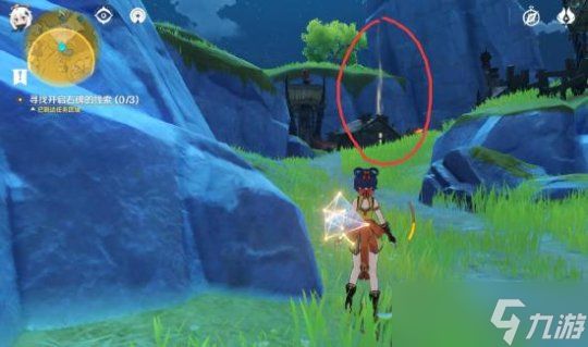 将找到的线索带回机关处,机关会直接被激活,任务也会完成。当机关被激活后,画面会提示附近3个宝箱的封印也被解除,记得去拿取宝箱里的物品。另外,在这个区域附近还有一个需要水属性角色才能激活的柱子机关,可以做个标记,等待有水属性角色的角色再来解谜。