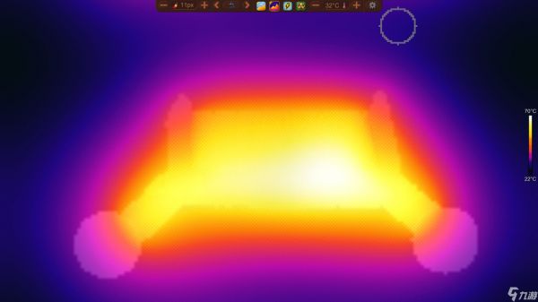 使用热成像视图探索模拟中的热力学动态。此功能帮助你直观理解不同材料之间的热量传递。
