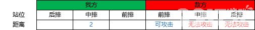 距离定义:一个行军队列最多携带3支异兽,每只异兽会分别带领一只小队。小队根据编队顺序依次分别为前排、中排、及后排,每个小队之间的距离为1。