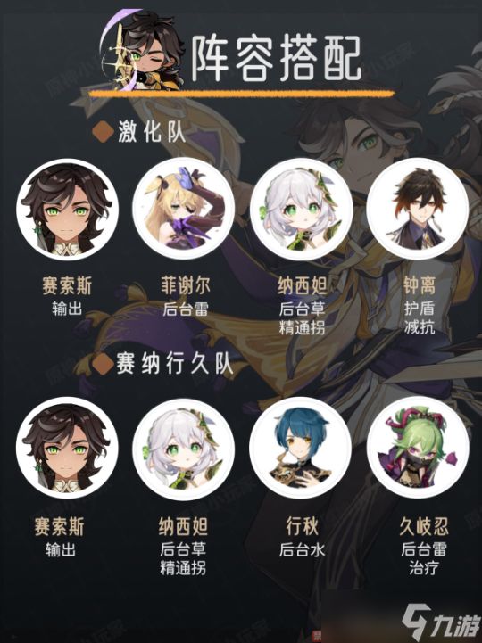 ② 赛纳行久队: 赛索斯+纳西妲+行秋+久岐忍