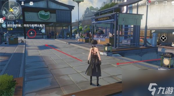 3、后面来到下方图中的药房位置,去和npc对话后就会自动触发剧情,接着就能活的第二样食材了。