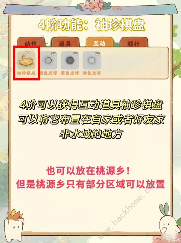 4阶的迷你棋桌是可以携带到别人家里或者桃源乡中下棋,用处也不是很大。4阶还可以获得一个头像框。
