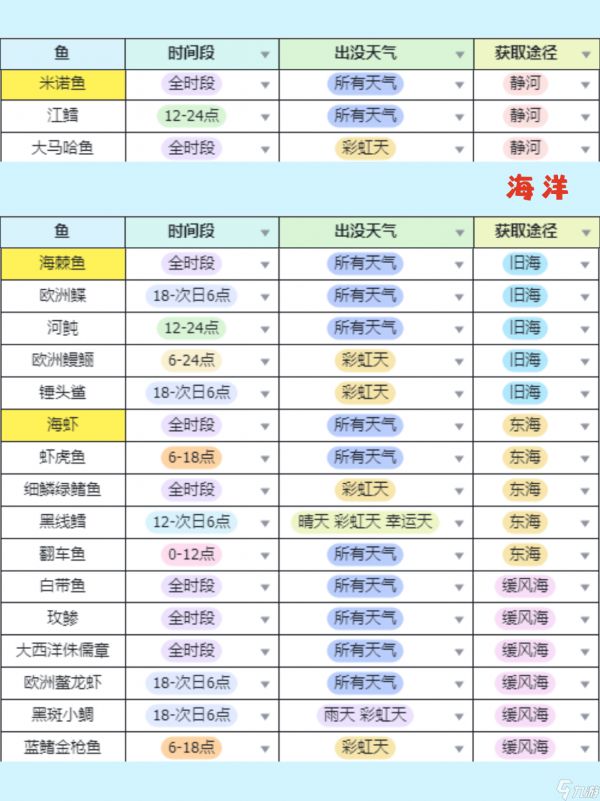 心动小镇钓鱼是非常受欢迎的,这里是一个不错的赚钱方法!游戏中每种鱼都有自己的出现时间地点,对于一些较难获取的鱼还需要使用道具,部分可钓的种类会受到天气和时间两个因素的影响!接下来给大家带来了心动小镇手游钓鱼无敌进阶全图鉴攻略,一起来看看吧!