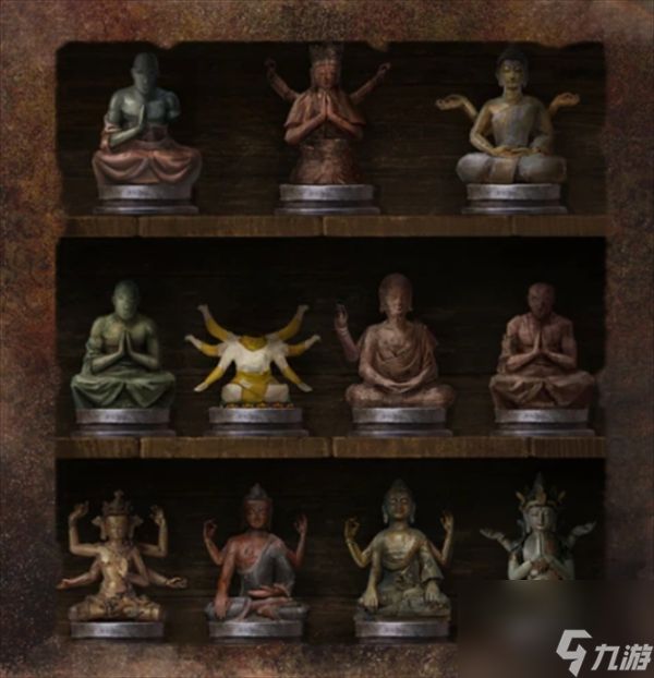 2、在瞎盒手俑处使用古钱,获得【六臂纸俑】、【寿鞋】,将寿鞋扔到如图水中可以获得【假发】、【领带】;