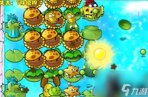 4.上方继续补充向日葵,并在外种植一株海兵菇,以增强防御。