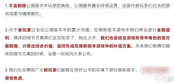 针对新版本如何补偿玩家、旧角色继承等老玩家关注的问题,《射雕》也给出了“全额返”“不会删除公测数据”“确保新玩家公平”等三大承诺,尽可能做到“焕新江湖,一个都不能少”。