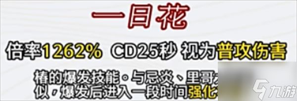 变奏入场,此时打普攻或者技能可以消耗能量叠层,最高10层, 叠满后e变成超高倍率的“一日花”10级1262%的倍率,这个时候会变成含苞形态(含苞形态只会强化e和平a输出,不管此时是白椿和红椿),期间持续用普攻或者e输出,红椿白椿都可以,看怪的分布灵活换,一日花状态结束切人循环就行。