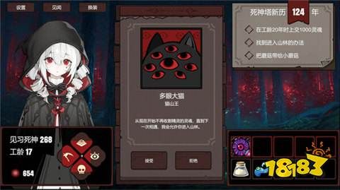 《死神模拟器》你将扮演一位见习期死神,收割灵魂偿还债务。随机的抉择事件为你提供多种选择:反正灵魂还不完,躺在床上摆摆烂。跟着前辈赚外快,收集衣服换着穿。见习期死神的命不是命,重来的次数无穷尽。