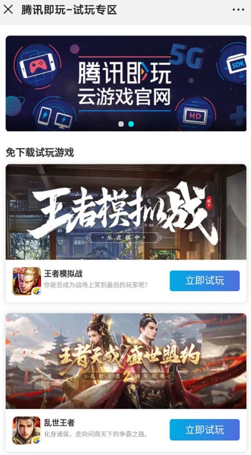 腾讯即玩公众号上线:开启云游戏试玩体验
