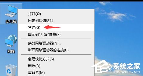 1、桌面右键点击【此电脑】,在打开的菜单项中,选择【管理】;