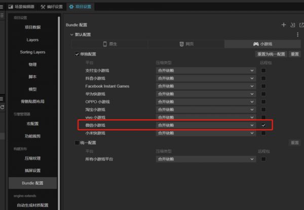 接着在 Bundle 设置中,勾选对应发布平台的远程包选项。