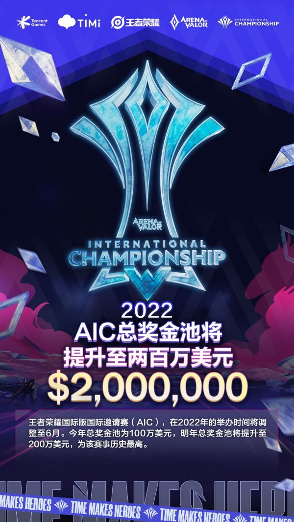 国际赛事方面,2022年AIC国际邀请赛举办时间将调整至6月,来自更多地区的战队将参与其中,为荣誉而战。此外,2022年AIC赛事总奖金池也将再次翻倍达到200万美元,为该赛事历史最高金额。AIC结束后,各联赛将从7月到9月进入第二个赛季,继续展开对2022年王者荣耀世界冠军杯(AWC)参赛资格的争夺。