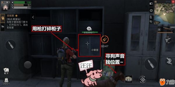 伙伴狗在门禁卡钥匙放置地叫,所以位置很容易被找到,如何获取呢?用手枪把柜子打碎就能进行搜找,找到门禁卡钥匙别急着走,里面还有能打碎搜找的柜子,全搜刮了在找,你会得到很多有用的补给,对于后面击杀拉扎罗夫很有帮助。