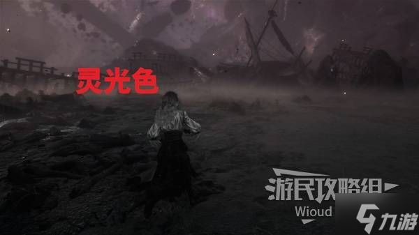 起始点先激活左前方的旗帜,旗帜左侧有个只剩骨架的船,里面可拿到一个【灵光色】。