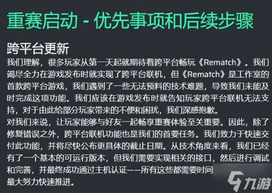 《《开球!REMATCH》》虽然也支持主机平台,但唯一的缺点是目前还不支持跨平台联机。不过,开发商Sloclap表示,跨平台联机功能即将推出,这一功能作为当下的首要任务正在尽最大努力快速推进。
