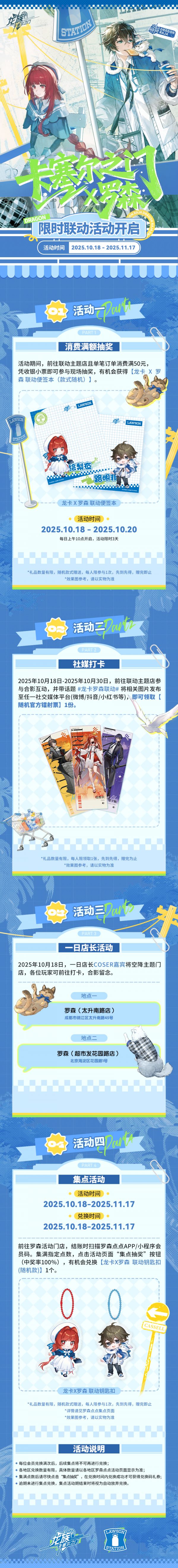时间:2025-10-18 12:04亲爱的专员,《龙族:卡塞尔之门》x 罗森(限定区域),全新联动活动「便利店奇妙物语」即将于10月18日正式开启!