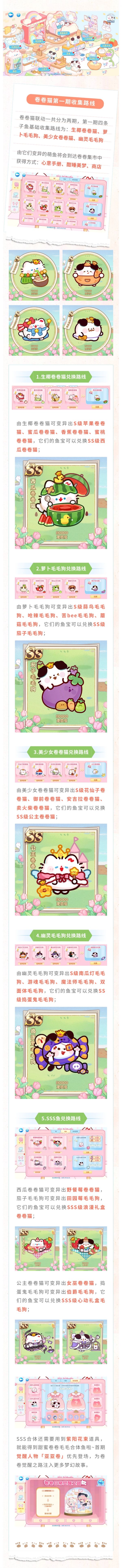 卷卷猫联动一共分为两期,第一期四条子鱼基础收集路线为:生椰卷卷猫、萝卜毛毛狗、美少女卷卷猫、幽灵毛毛狗