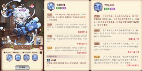 核心超强防御,护盾保护,免伤鼓舞,眩晕,同时能与星空奶冻形成水系技能羁绊额外提高伤害。