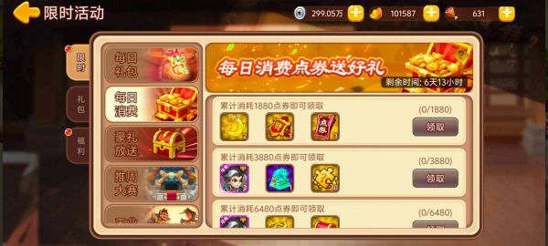 活动内容:活动期间每天累积消费至指定额度,即可领取奖励。次日0点重置消费进度和奖励。