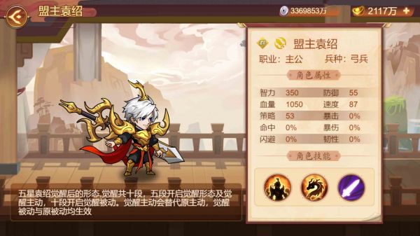 群雄阵营武将袁绍开启觉醒养成,解锁觉醒形象。