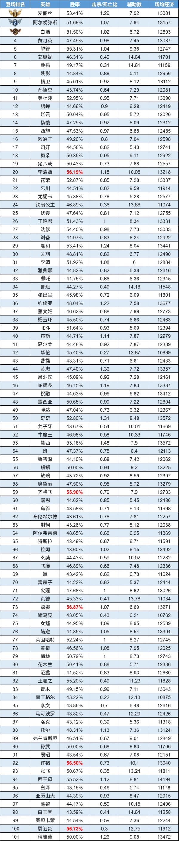 趣味数据|嫦娥斩获低段位胜率TOP2