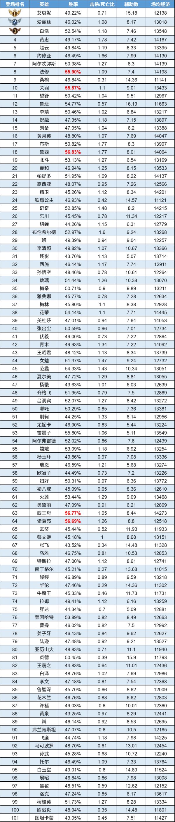 【低段位】嫦娥胜率一飞冲天,尉迟炎紧跟其后稳坐第二把交椅;西王母成为本轮均场经济TOP1。
