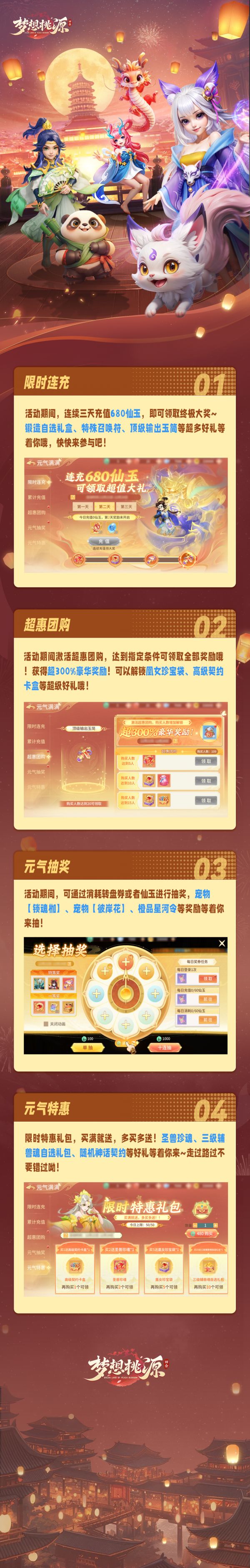 本周的元气满满活动即将开启,小梦灵喊你来参加!超惠团购可以获得超300%豪华奖励,元气抽奖超多奖励等你来抽,奖励还可以自选哦~【宝石箱子】、【溯元石】、坐骑【禁地守护】、【1星传说神魂自选礼盒】等丰厚奖励等你来拿~福利多多,速来参与!