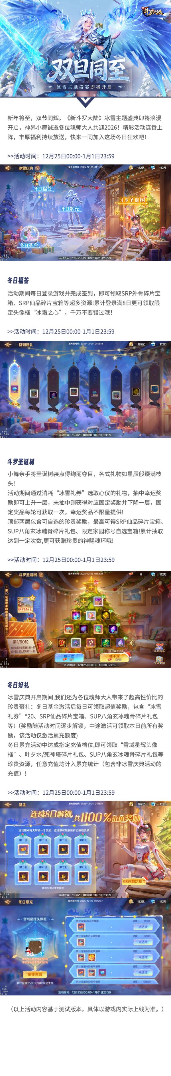 新年将至,双节同辉。《新斗罗大陆》冰雪主题盛典即将浪漫开启,神界小舞诚邀各位魂师大人共迎2026!精彩活动连番上阵,丰厚福利持续放送,快来一同加入这场冬日狂欢吧!