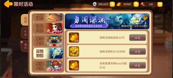 活动内容:活动期间,使用指定道具、完成任务可获得稀有大奖。击败更高难度的深渊BOSS时,低难度深渊BOSS挑战任务亦可同时完成。