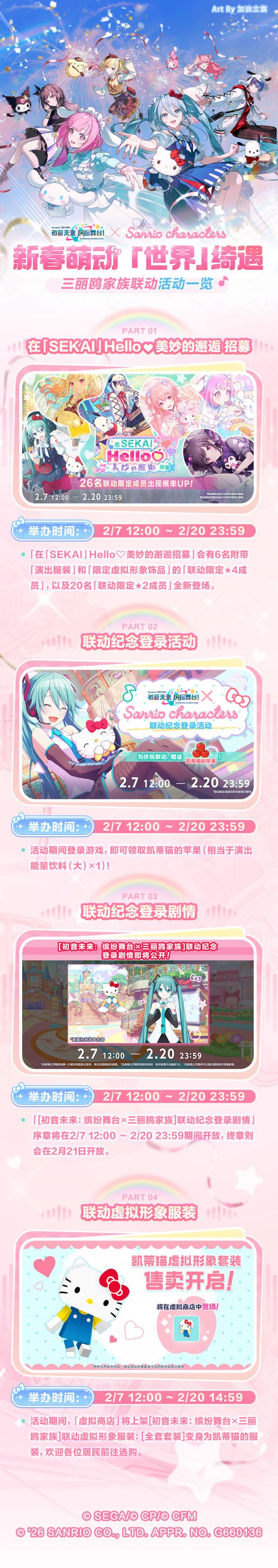 [初音未来:缤纷舞台×三丽鸥家族]联动纪念活动将于2月7日正式开启!敬请查看相关活动一览。