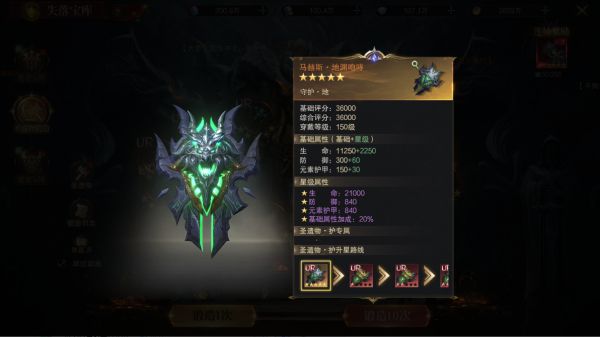 消耗10个圣祭水晶,可一键锻造10次,获得10件圣遗物。