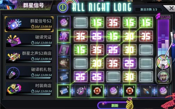 2.4.当破译信号5个连成1条线时可以获取对应线上的道具,但只可激活3次(破译信号时无论激活几条线均算激活1次),激活完后必须刷新才可继续破译