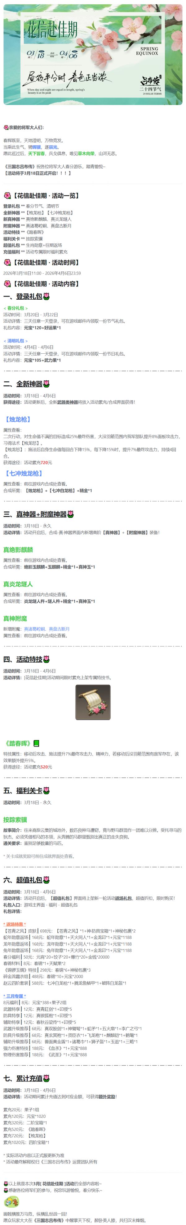 《三国志吕布传》 3月活动丨花信赴佳期
