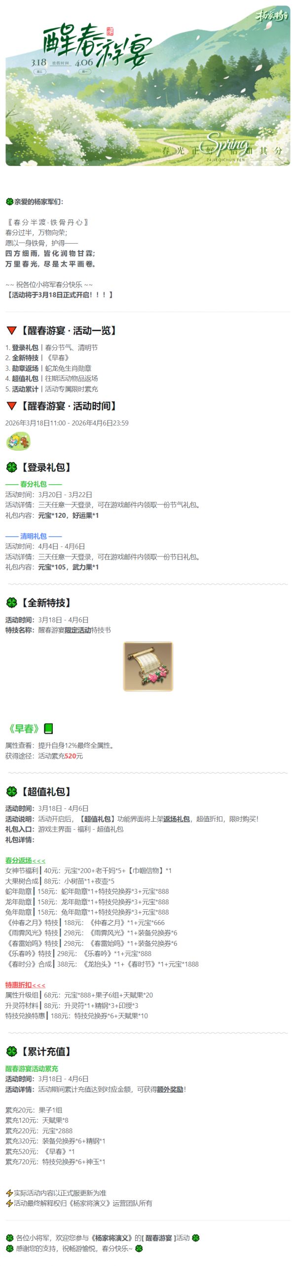 《杨家将演义》3月活动丨醒春游宴