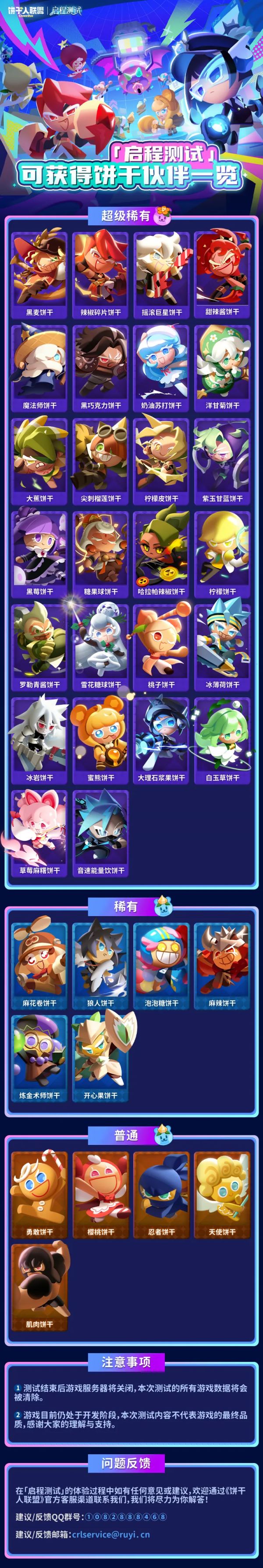 「启程测试」即将开启,除了熟悉的勇敢饼干、麻花卷饼干,还有哪些饼干会在本次测试中登场?从主线通关赠送,到扭蛋池抽取,再到签到活动直接领——普通、稀有、超级稀有……不同稀有度的他们,都在这张图里啦~