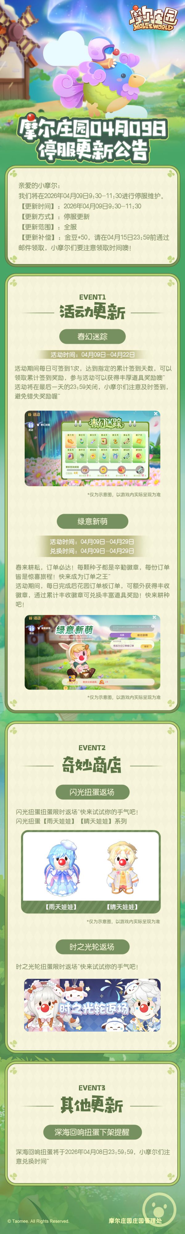 【更新补偿】:金豆*50,请在4月15日23:59前通过邮件领取,小摩尔们要注意领取时间噢!